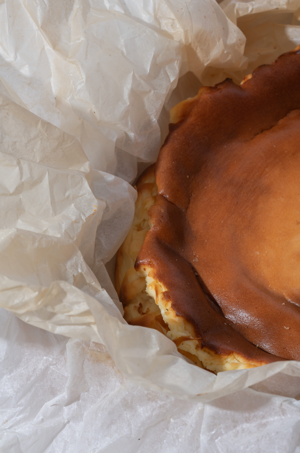 Le coton, la douceur, le marshmallow, manger notre cheesecake basque c'est comme faire un énorme câlin à une peluche géante. Tout simplement. Cream cheese, crème fraîche et mascarpone, le trio infernal à l'origine de ce fantasme ! Une touche de sucre roux, un soupçon de vanille et le tour est joué.